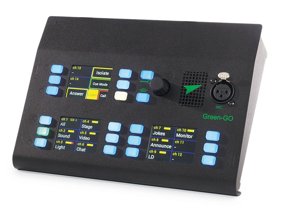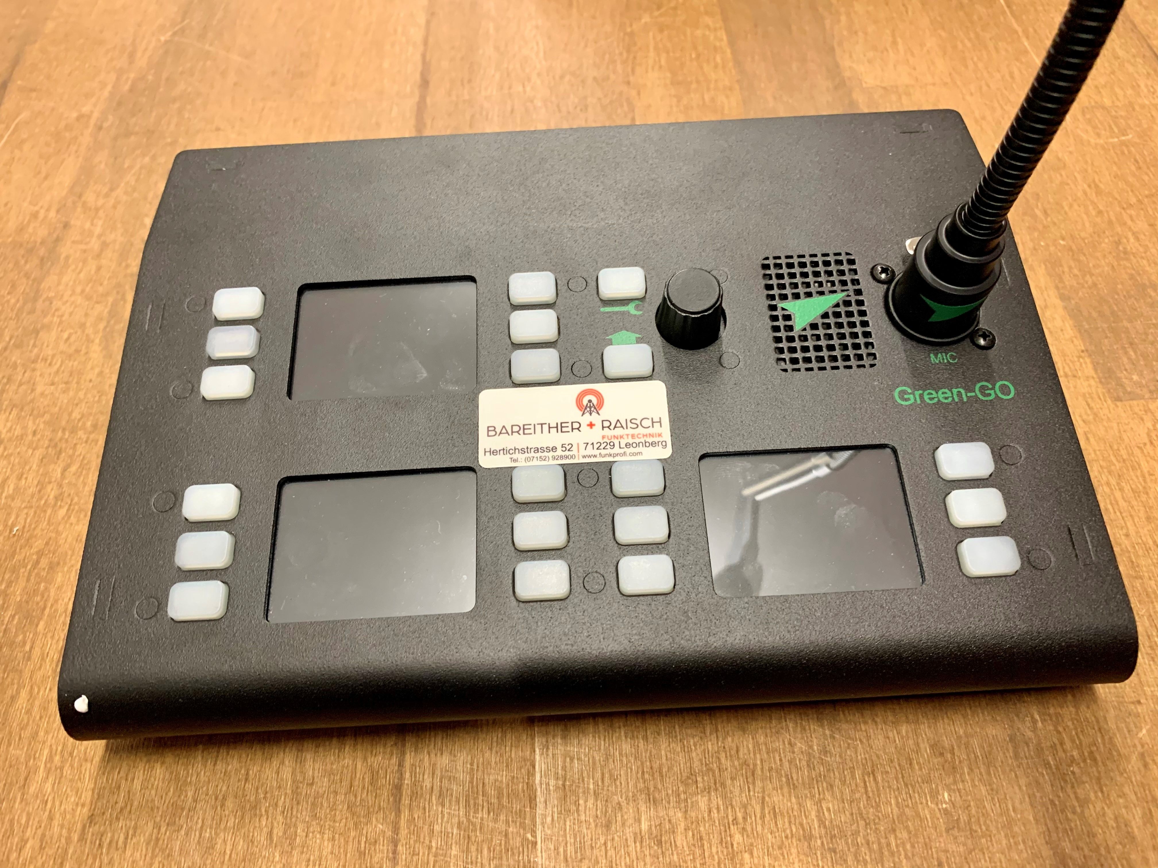 Die Green-GO MCXD Tischstation integriert sich durch ihre kompakte Bauweise problemlos in jeden Arbeitsplatz. Sie bietet dem Anwender einen direkten Zugriff auf bis zu 32 Kanäle und zahlreiche Funktionen. Drei kontrastreiche Farb-Touchscreens und 20 hinterleuchtete Funktionstasten erlauben dem Anwender eine kompakte und präzise Bedienung für Sprache, Ruf- oder Lichtzeichen. Die reiche Auswahl an Anschlüssen bietet eine Vielzahl an Möglichkeiten. Der Anwender kann entweder über den eingebauten 2 Watt Lautsprecher und ein externes Mikrofon oder via Headset kommunizieren. Außerdem ist es in lauten Umgebungen möglich, einen externen Lautsprecher über den Line-Out Anschluss zu betreiben. Externe Audiosignale können über den Line-In Anschluss einfach allen Green-GO Teilnehmern über Gruppen für z. B. einen Programmton zur Verfügung gestellt werden. Der GPIO-Anschluss erlaubt einen externen Zugriff auf alle Kommunikationssignale der Green-GO Engine (Licht-, Rufzeichen und Sprache) über zwei Ein- und Ausgänge.