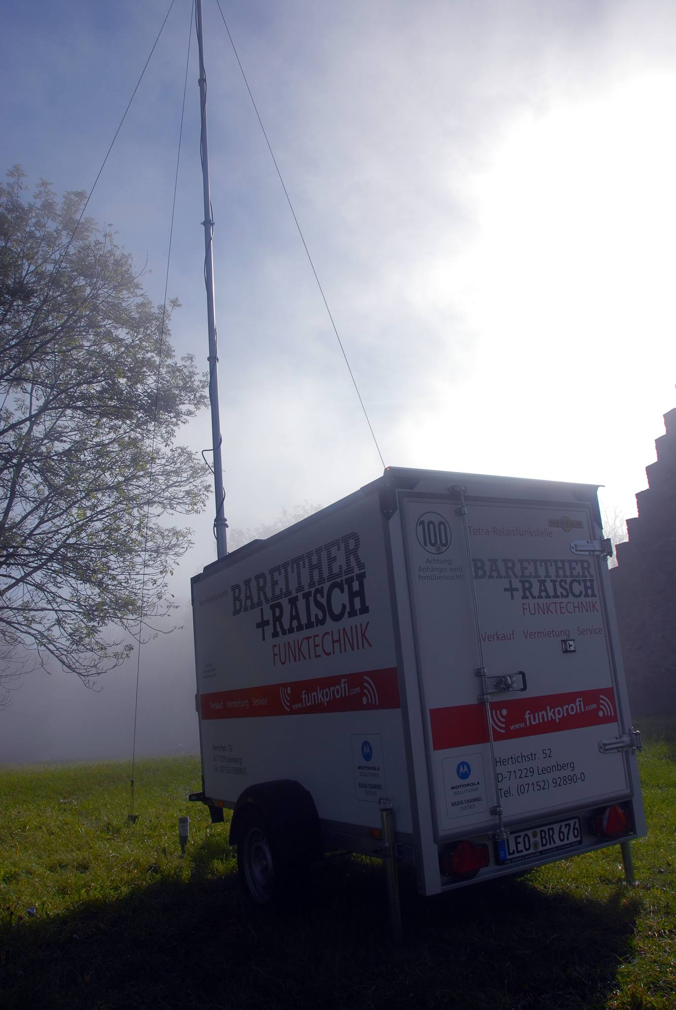 Mit unserem fest installierten Pneumatikmast erreichen Sie im Gelände deutlich höhere Reichweiten.